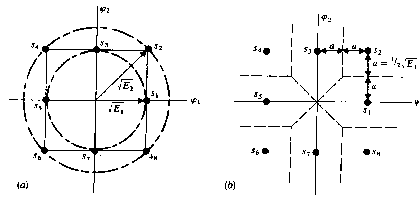 Per poter costruire modem veloci, è stato considerato lo spazio dei segnali bidimensionali (4- PSK o 16-QAM). Shannon aveva già osservato che ci può essere, nelle trasmissioni, un guadagno dovuto all'incremento della dimensione nello spazio dei segnali e la velocità dipende non più da T e da W, ma da M; T e W sono interscambiabili. Quindi posso ignorare la limitazione dovuta alla ristretta banda telefonica o alla limitazione sul canale e posso, quindi, trasmettere ad alta velocità su di una banda limitata.