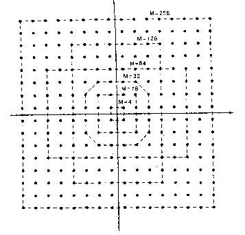 Le costellazioni di segnali da 4 a 256 sono riportate in figura.